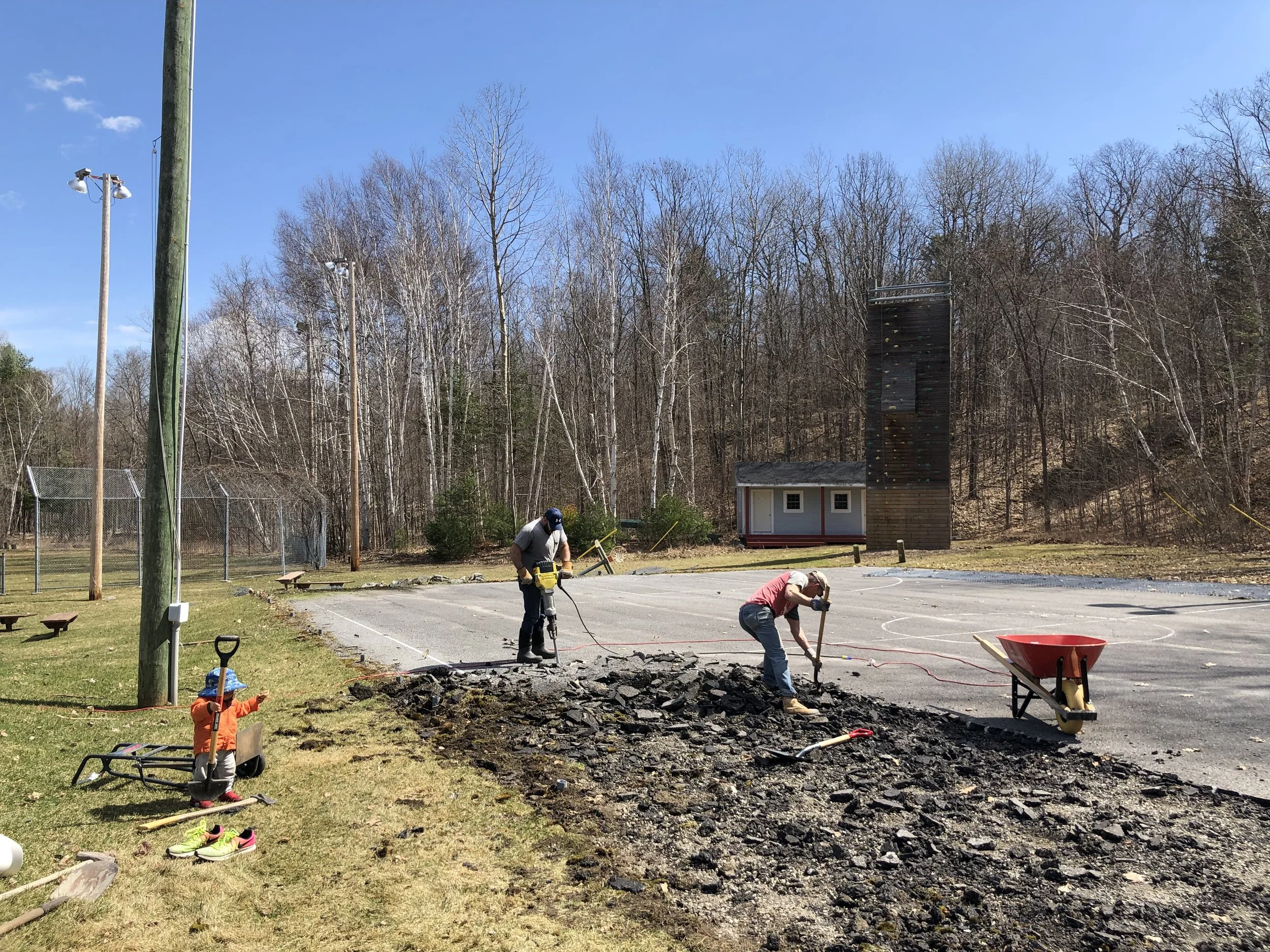 We got defeated that weekend. It turned out that parts of the court had two layers of asphalt which made it twice as much work as we anticipated. Additionally, we quickly learned that one jackhammer, and a few sledgehammers are not enough. The following weekend, we came in with full force – more people, more machinery.